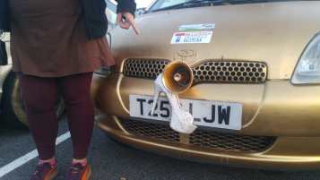 Dumballing for 12 years we’ve learned a few things… one of them is that sometimes its handy to bring you own bar – Team Teenage Cancer Trust sorted us out last night, as there was a wedding at the hotel which took over the restaurant and bar. We found what looked like the brides shoe tied to our car in the morning.